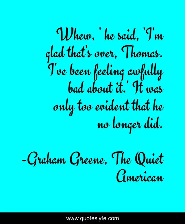 "Graham Greene, The Quiet American Quotes." Quoteslyfe.com, 2025. Mon. 08 Dec. 2025. <https://www.quoteslyfe.com/quote/Whew-he-said-I-m-glad-that-55764>.