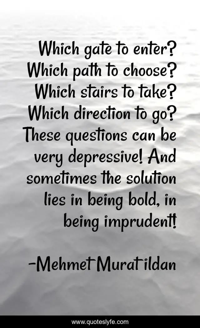 "Mehmet Murat ildan Quotes." Quoteslyfe.com, 2025. Sun. 14 Dec. 2025. <https://www.quoteslyfe.com/quote/Which-gate-to-enter-Which-path-to-184585>.