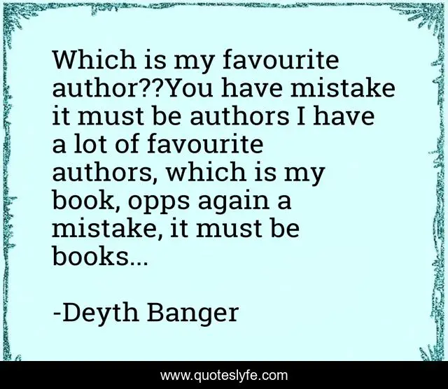 This page presents the quote "Which is my favourite author??You have mistake it must be authors I have a lot of favourite authors, which is my book, opps again a mistake, it must be books...". Author of this quote is Deyth Banger. This quote is about on, author, favourite, book, books, films, so,.