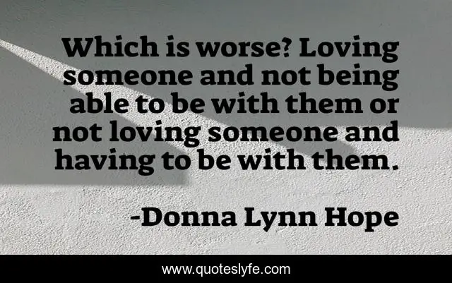 "Donna Lynn Hope Quotes." Quoteslyfe.com, 2025. Sun. 07 Dec. 2025. <https://www.quoteslyfe.com/quote/Which-is-worse-Loving-someone-and-not-251764>.