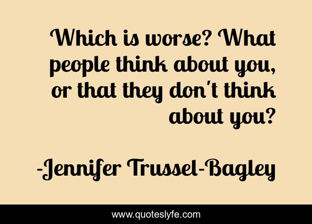 "Jennifer Trussel-Bagley Quotes." Quoteslyfe.com, 2025. Fri. 05 Dec. 2025. <https://www.quoteslyfe.com/quote/Which-is-worse-What-people-think-about-51586>.