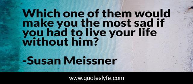 This page presents the quote "Which one of them would make you the most sad if you had to live your life without him?". Author of this quote is Susan Meissner. This quote is about true-love, florence, girl-in-the-glass,.