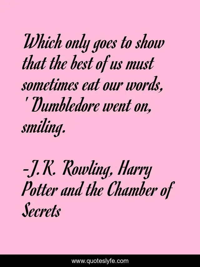 This page presents the quote "Which only goes to show that the best of us must sometimes eat our words, ' Dumbledore went on, smiling.". Author of this quote is J.K. Rowling, Harry Potter and the Chamber of Secrets. .