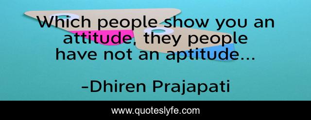 This page presents the quote "Which people show you an attitude, they people have not an aptitude...". Author of this quote is Dhiren Prajapati. This quote is about life-lesson, behaviour, attitude, life, aptitude,.