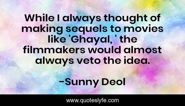 This page presents the quote "While I always thought of making sequels to movies like 'Ghayal, ' the filmmakers would almost always veto the idea.". Author of this quote is Sunny Deol. This quote is about thought, always, idea,.