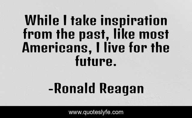 This page presents the quote "While I take inspiration from the past, like most Americans, I live for the future.". Author of this quote is Ronald Reagan. This quote is about past, live, inspiration,.