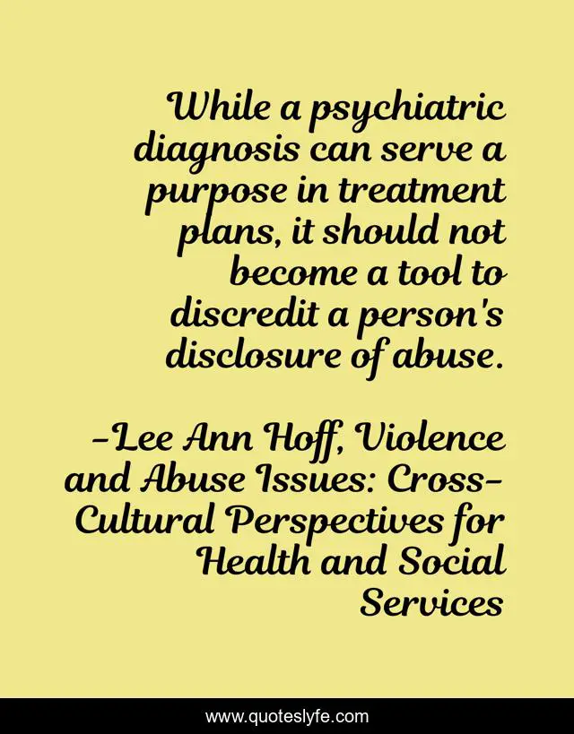 "Lee Ann Hoff, Violence and Abuse Issues: Cross-Cultural Perspectives for Health and Social Services Quotes." Quoteslyfe.com, 2025. Tue. 09 Dec. 2025. <https://www.quoteslyfe.com/quote/While-a-psychiatric-diagnosis-can-serve-a-211127>.