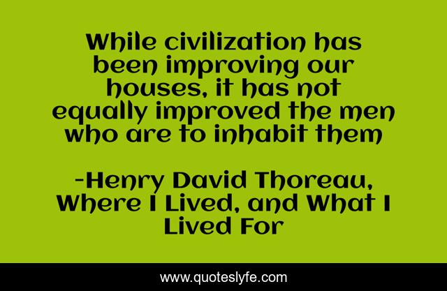 "Henry David Thoreau, Where I Lived, and What I Lived For Quotes." Quoteslyfe.com, 2025. Mon. 08 Dec. 2025. <https://www.quoteslyfe.com/quote/While-civilization-has-been-improving-our-houses-71040>.