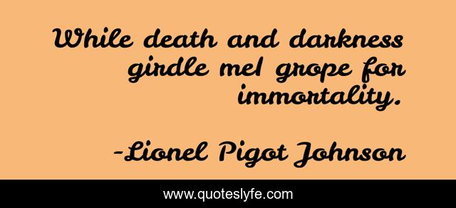 This page presents the quote "While death and darkness girdle meI grope for immortality.". Author of this quote is Lionel Pigot Johnson. This quote is about immortality, death, darkness,.