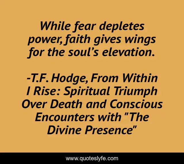 "T.F. Hodge, From Within I Rise: Spiritual Triumph Over Death and Conscious Encounters with "The Divine Presence" Quotes." Quoteslyfe.com, 2025. Tue. 09 Dec. 2025. <https://www.quoteslyfe.com/quote/While-fear-depletes-power-faith-gives-wings-22114>.