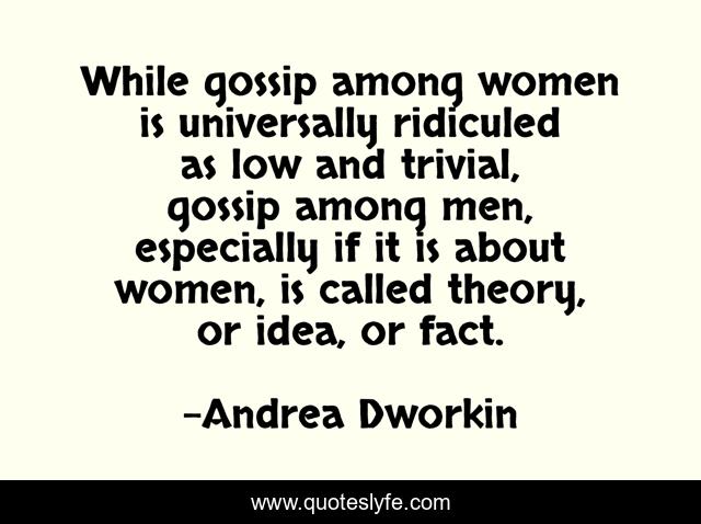 "Andrea Dworkin Quotes." Quoteslyfe.com, 2025. Sun. 07 Dec. 2025. <https://www.quoteslyfe.com/quote/While-gossip-among-women-is-universally-ridiculed-302492>.