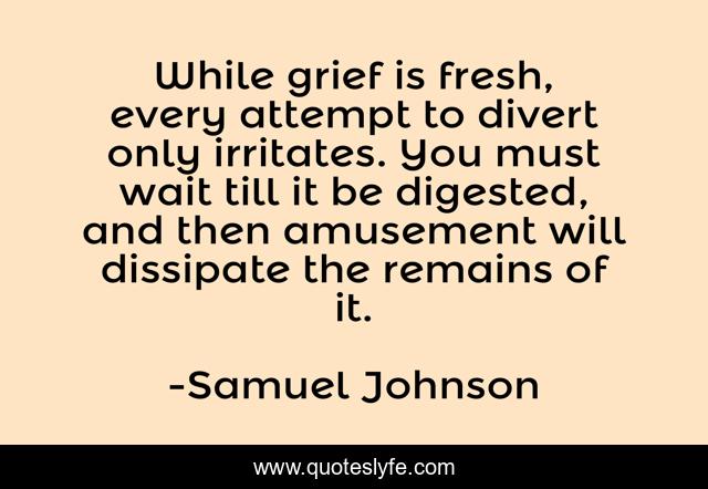 This page presents the quote "While grief is fresh, every attempt to divert only irritates. You must wait till it be digested, and then amusement will dissipate the remains of it.". Author of this quote is Samuel Johnson. .