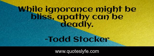 This page presents the quote "While ignorance might be bliss, apathy can be deadly.". Author of this quote is Todd Stocker. This quote is about confidence, apathy, deadly, motivational, ignorance, bliss, optimistic, inspirational, positive,.