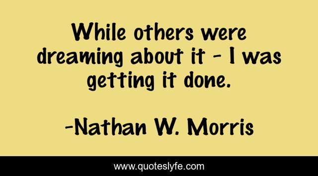 This page presents the quote "While others were dreaming about it - I was getting it done.". Author of this quote is Nathan W. Morris. This quote is about motivation, success, business, entrepreneurs, entreprenurship, getting-things-done, entrepreneurial, inspirational, money,.