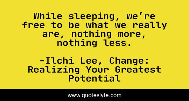 This page presents the quote "While sleeping, we’re free to be what we really are, nothing more, nothing less.". Author of this quote is Ilchi Lee, Change: Realizing Your Greatest Potential. This quote is about enthusiasm, inspirational, self-development,.