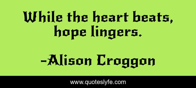 "Alison Croggon Quotes." Quoteslyfe.com, 2025. Sat. 06 Dec. 2025. <https://www.quoteslyfe.com/quote/While-the-heart-beats-hope-lingers-19220>.