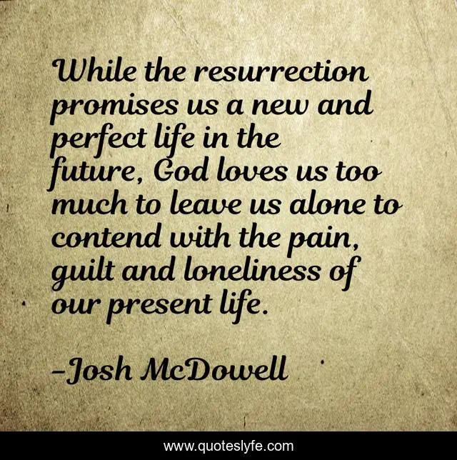 This page presents the quote "While the resurrection promises us a new and perfect life in the future, God loves us too much to leave us alone to contend with the pain, guilt and loneliness of our present life.". Author of this quote is Josh McDowell. This quote is about god, life, future,.