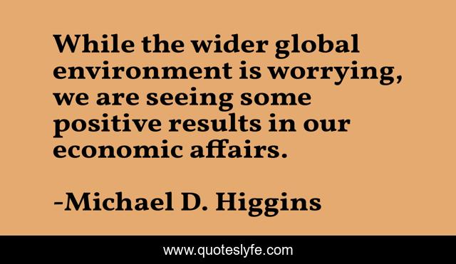This page presents the quote "While the wider global environment is worrying, we are seeing some positive results in our economic affairs.". Author of this quote is Michael D. Higgins. This quote is about environment, economic,.