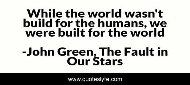 This page presents the quote "While the world wasn't build for the humans, we were built for the world". Author of this quote is John Green, The Fault in Our Stars. .