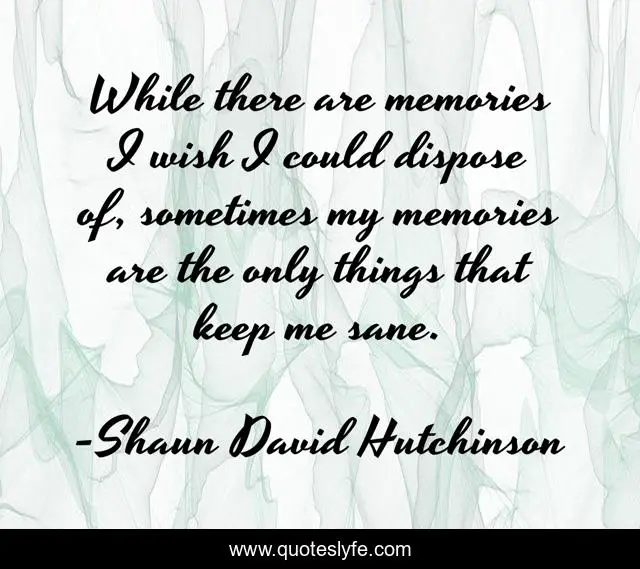 This page presents the quote "While there are memories I wish I could dispose of, sometimes my memories are the only things that keep me sane.". Author of this quote is Shaun David Hutchinson. This quote is about glbt, young-adult, contemporary, science-fiction,.