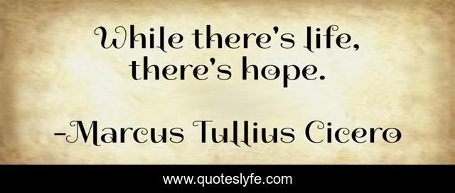 "Marcus Tullius Cicero Quotes." Quoteslyfe.com, 2025. Tue. 09 Dec. 2025. <https://www.quoteslyfe.com/quote/While-there-s-life-there-s-hope-2784>.