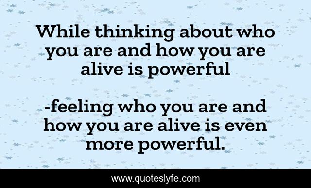 "feeling who you are and how you are alive is even more powerful. Quotes." Quoteslyfe.com, 2025. Fri. 05 Dec. 2025. <https://www.quoteslyfe.com/quote/While-thinking-about-who-you-are-and-88594>.