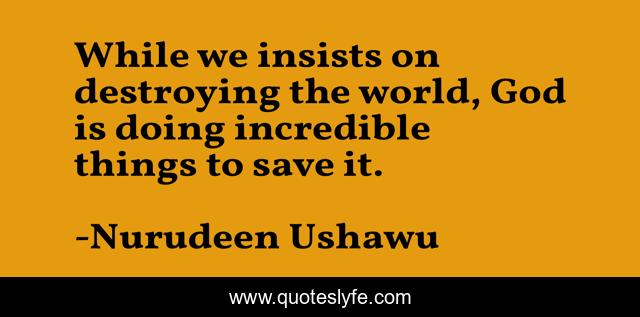 "Nurudeen Ushawu Quotes." Quoteslyfe.com, 2025. Sun. 07 Dec. 2025. <https://www.quoteslyfe.com/quote/While-we-insists-on-destroying-the-world-37950>.