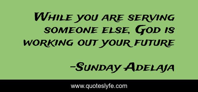 This page presents the quote "While you are serving someone else, God is working out your future". Author of this quote is Sunday Adelaja. This quote is about god, serve, calling, future, fulfillment, purpose,.