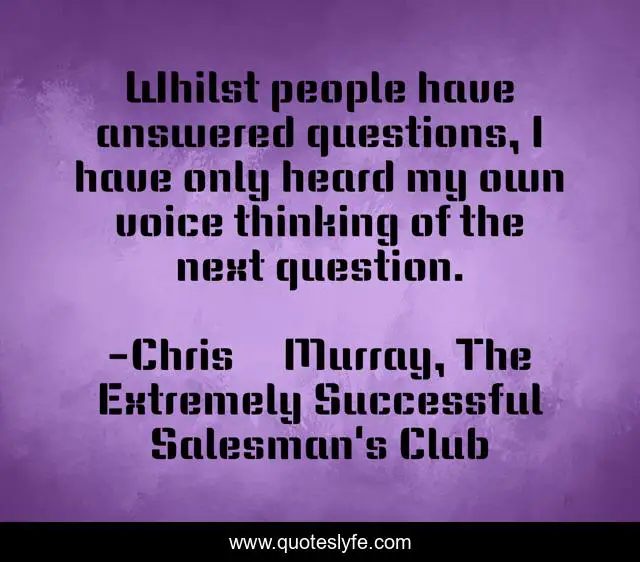 "Chris Murray, The Extremely Successful Salesman's Club Quotes." Quoteslyfe.com, 2025. Mon. 08 Dec. 2025. <https://www.quoteslyfe.com/quote/Whilst-people-have-answered-questions-I-have-109680>.