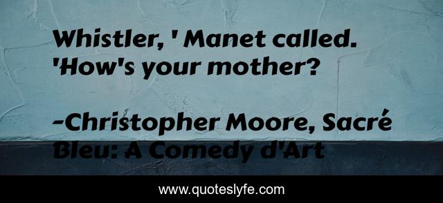 This page presents the quote "Whistler, ' Manet called. 'How's your mother?". Author of this quote is Christopher Moore, Sacré Bleu: A Comedy d'Art. This quote is about whistler, manet, art,.