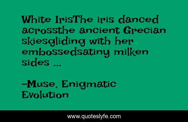 "Muse, Enigmatic Evolution Quotes." Quoteslyfe.com, 2025. Fri. 05 Dec. 2025. <https://www.quoteslyfe.com/quote/White-IrisThe-iris-danced-acrossthe-ancient-Grecian-82844>.