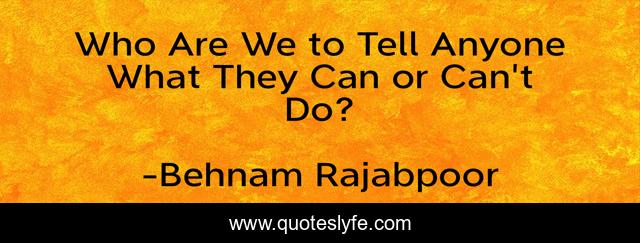 This page presents the quote "Who Are We to Tell Anyone What They Can or Can't Do?". Author of this quote is Behnam Rajabpoor. This quote is about struggling, leader, experience, consistency,.