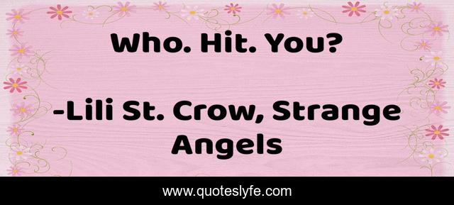 "Lili St. Crow, Strange Angels Quotes." Quoteslyfe.com, 2025. Mon. 08 Dec. 2025. <https://www.quoteslyfe.com/quote/Who-Hit-You-233129>.