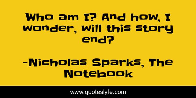 This page presents the quote "Who am I? And how, I wonder, will this story end?". Author of this quote is Nicholas Sparks, The Notebook. .