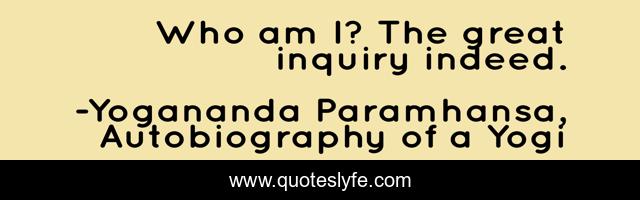 "Yogananda Paramhansa, Autobiography of a Yogi Quotes." Quoteslyfe.com, 2025. Tue. 09 Dec. 2025. <https://www.quoteslyfe.com/quote/Who-am-I-The-great-inquiry-indeed-227782>.