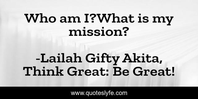 "Lailah Gifty Akita, Think Great: Be Great! Quotes." Quoteslyfe.com, 2025. Mon. 08 Dec. 2025. <https://www.quoteslyfe.com/quote/Who-am-I-What-is-my-mission-121294>.