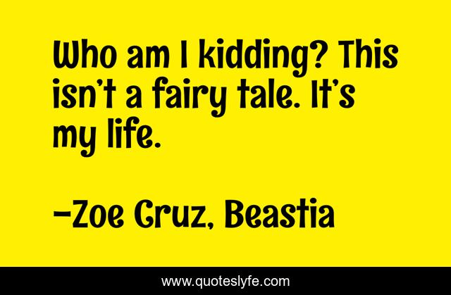 This page presents the quote "Who am I kidding? This isn’t a fairy tale. It’s my life.". Author of this quote is Zoe Cruz, Beastia. This quote is about life, ya, fairy-tale, kidding, fairy-tales, young-adult,.