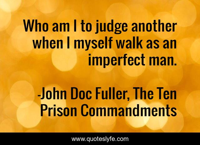This page presents the quote "Who am I to judge another when I myself walk as an imperfect man.". Author of this quote is John Doc Fuller, The Ten Prison Commandments. .