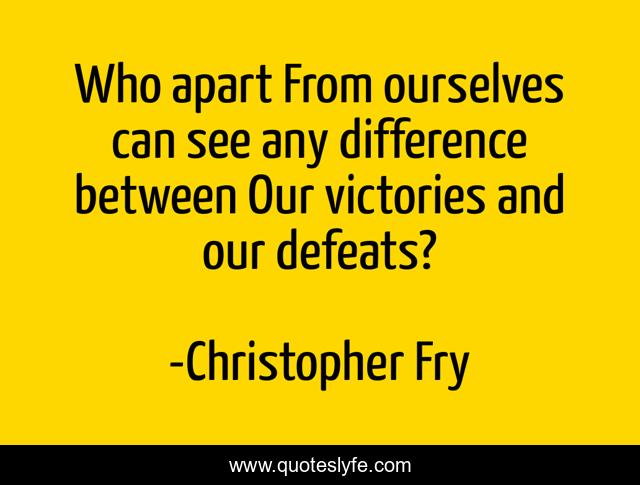 This page presents the quote "Who apart From ourselves can see any difference between Our victories and our defeats?". Author of this quote is Christopher Fry. .