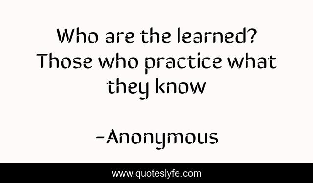 This page presents the quote "Who are the learned? Those who practice what they know". Author of this quote is Anonymous. This quote is about reality-of-life, strength, inspirational, positive, motivational, confidence, optimistic, truth, strength-and-courage,.