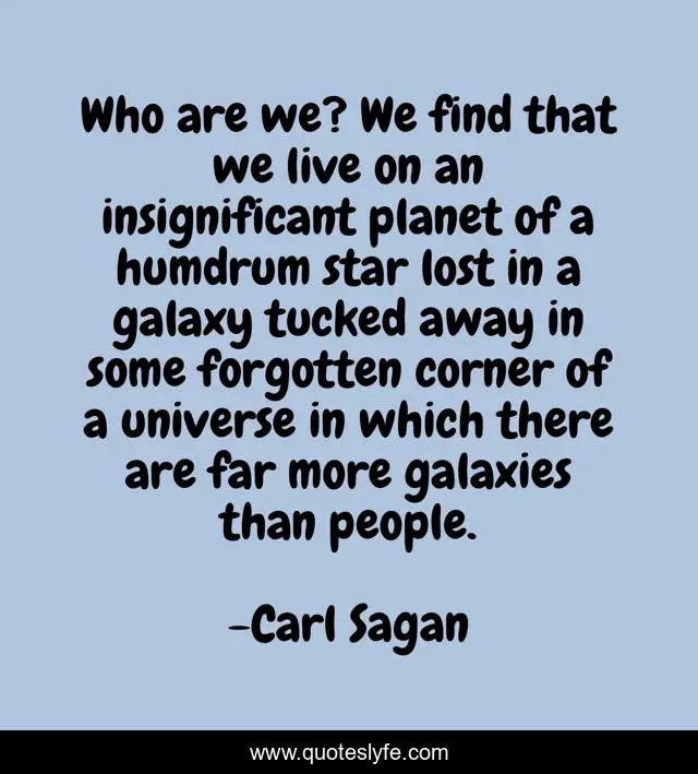 "Carl Sagan Quotes." Quoteslyfe.com, 2025. Sun. 07 Dec. 2025. <https://www.quoteslyfe.com/quote/Who-are-we-We-find-that-we-271307>.