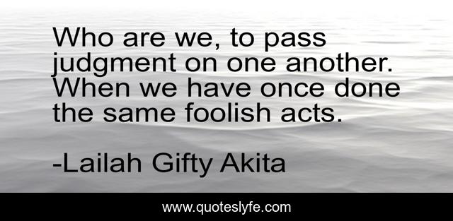 This page presents the quote "Who are we, to pass judgment on one another. When we have once done the same foolish acts.". Author of this quote is Lailah Gifty Akita. This quote is about faith, christian, wise-sayings, religion, judge, forgiveness, judegment, sin, sinner,.