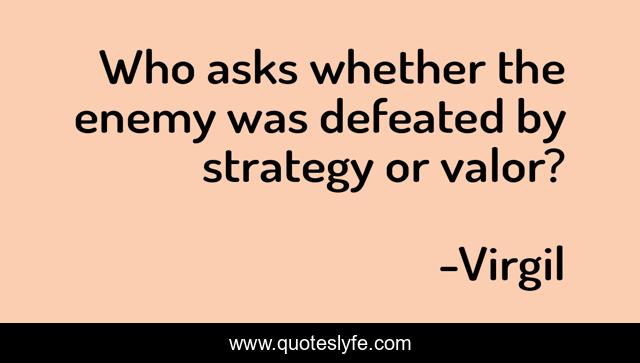 This page presents the quote "Who asks whether the enemy was defeated by strategy or valor?". Author of this quote is Virgil. This quote is about enemy, defeated, strategy,.