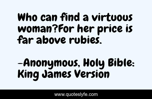 "Anonymous, Holy Bible: King James Version Quotes." Quoteslyfe.com, 2025. Mon. 08 Dec. 2025. <https://www.quoteslyfe.com/quote/Who-can-find-a-virtuous-woman-For-177159>.