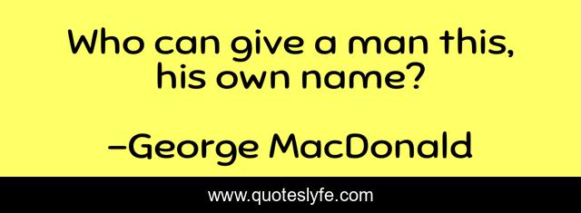 This page presents the quote "Who can give a man this, his own name?". Author of this quote is George MacDonald. This quote is about man, names, identity, masculinity,.