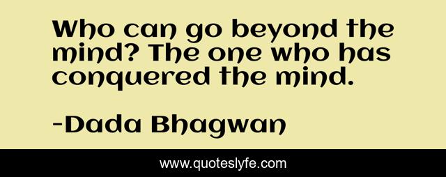 This page presents the quote "Who can go beyond the mind? The one who has conquered the mind.". Author of this quote is Dada Bhagwan. This quote is about mind, control-the-mind, mind-control, spiritual, conquer-the-mind,.
