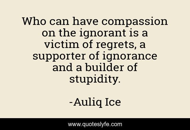 This page presents the quote "Who can have compassion on the ignorant is a victim of regrets, a supporter of ignorance and a builder of stupidity.". Author of this quote is Auliq Ice. This quote is about stupid-people, ignorance, stupidity, confusion-and-attitude,.