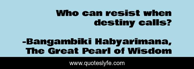 "Bangambiki Habyarimana, The Great Pearl of Wisdom Quotes." Quoteslyfe.com, 2025. Mon. 08 Dec. 2025. <https://www.quoteslyfe.com/quote/Who-can-resist-when-destiny-calls-153755>.