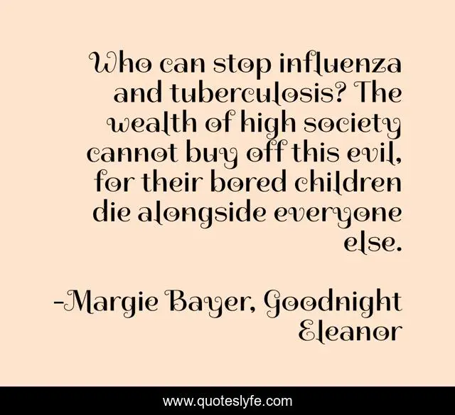 "Margie Bayer, Goodnight Eleanor Quotes." Quoteslyfe.com, 2025. Sat. 06 Dec. 2025. <https://www.quoteslyfe.com/quote/Who-can-stop-influenza-and-tuberculosis-The-212608>.