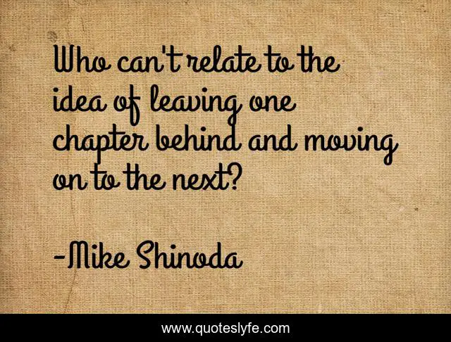 This page presents the quote "Who can't relate to the idea of leaving one chapter behind and moving on to the next?". Author of this quote is Mike Shinoda. This quote is about moving, idea, leaving,.